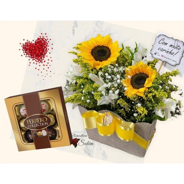Informações do produto: Arranjo Girassol duplo e Ferrero Collection