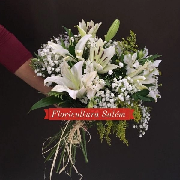 Informações do produto: Buquê com Lírios e Astromélias Brancas